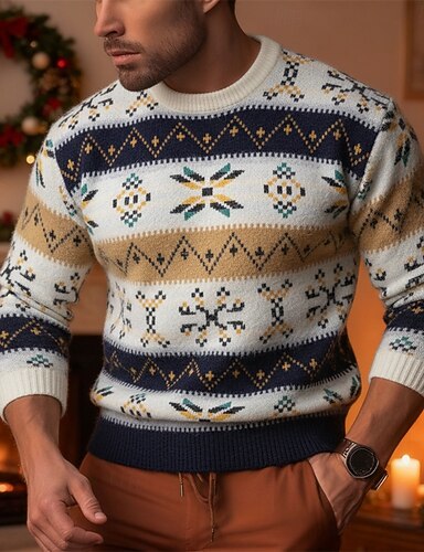 Herren Weihnachtspullover Pullover Fair Isle Sweater Strickpullover Gemusterter Pullover Gerippt Stricken Normale Oberteile Gestrickt Argyle Rundhalsausschnitt Mode Basic Weihnachten Urlaub Bekleidung