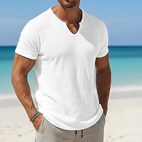 Herren T-Shirt Leinen-T-Shirt Kurze Ärmel V Ausschnitt Sommer Einfach Mode Designer Basic Weich Urlaub Alltagstauglich Strand Hellblau Weiß Rosa Top T-Shirt für Herren