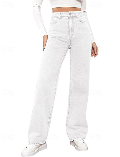 Damen Jeans Chinos Gerade Urlaub Vintage Streetwear Volle Länge Mittlere Taillenlinie Einfach Tasche Elastischer Bund Bequem Unelastisch Mikroelastisch Outdoor Straße Täglich Schwarzgrau Marinenblau