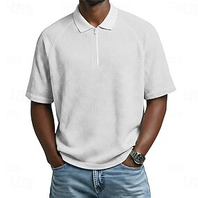 Herren Waffel-Poloshirts Reißverschluss-Polo Lässig Ferien Revers Viertelreißverschluss Kurzarm Mode Basic Einfach Viertel Postleitzahl Sommer Frühling Normale Passform Schwarz Weiß Marineblau Purpur