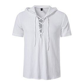 Mittelalterliches Wikinger-T-Shirt aus Baumwolle, kurzärmelig, Kapuzenhemden, Retro-Stil, zum Schnüren, Hippie, passendes Larp-Kostüm