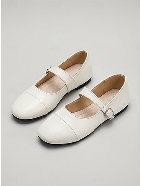 Weiße Mary-Jane-Ballerinas für Damen – klassische, geschlossene Ballerinas, bequeme flache Schuhe mit Schnallenriemen für Büro und Freizeit &Alltagskleidung