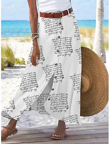 Damen Urlaubsrock Mode Lässig Maxi Hohe Taille Röcke Blumen Buchstabe Druck Unelastisch Täglich Straße Weiß Gelb Rosa Sommer Polyester