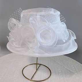 Hüte Kopfbedeckung Organza Eis Seide Eimerhut Schlapphut Sonnenhut Hochzeit Teegesellschaft Elegant Hochzeit Mit Blumig Kopfschmuck Kopfbedeckung