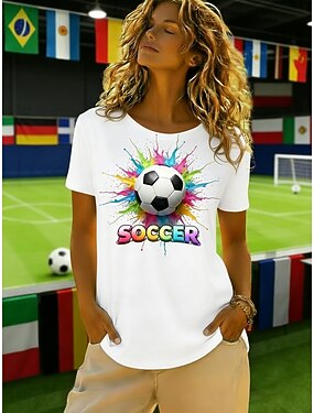 Damen T Shirt T-Shirt Druck Grafik Fußball Stilvoll Klassisch Lässig Kurzarm Rundhalsausschnitt Normale Oberteile Täglich Sport Ausgehen Schwarz Weiß Gelb Rosa Grün Sommer Frühling