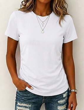 Damen T Shirt T-Shirt Einfach Mode Stilvoll Klassisch Kurzarm Asymmetrisch Normale Oberteile Lässig Täglich Ausgehen Weiß Wein Aprikose Sommer Frühling
