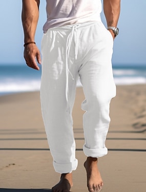 Herren Leinenhosen Hose Sommerhose Baggy-Hosen Strandhose Kordelzug Elastischer Bund Einfach Komfort Atmungsaktiv Outdoor Täglich Ferien Urlaub Mode Weiß