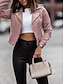 Damen Imitat-Lederjacke Freizeitjacke Winddicht Bequem Knöpfe Mode Lässig Einfarbig Lässig Straße Alltagskleidung Ausgehen Kurz Gekerbtes Revers Normale Passform Langarm Oberbekleidung Schwarz Rosa