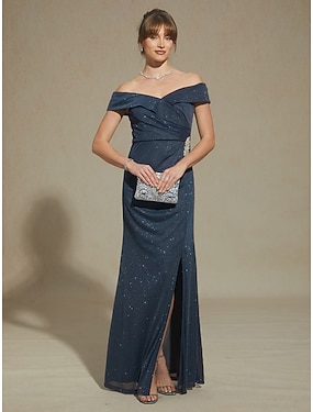 Damen Maxikleid Trompeten- Meerjungfrauenkleid Elegant Abendgesellschaft Strass Steine Verschönert Schlank Einfarbig Ärmellos Schulterfrei Kalter Schulter-Ausschnitt Silber