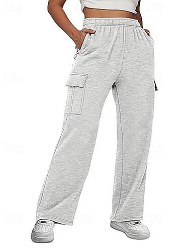 Damen Weite Hosenbeine Jogginghose Chinos Urlaub Streetwear Lässig Volle Länge Mittlere Taillenlinie Einfach Tasche Elastisches Kordelzugdesign Bequem Mikroelastisch Täglich Outdoor Urlaub Hellgrau