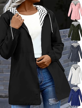 Damen Trenchcoat Wasserdichte Regenjacken Regenmäntel Wasserdicht Winddicht Reißverschluss Tasche Mode Outdoor Einfach Ausgehen Wochenende Reisverschluss Regulär Mit Kapuze Normale Passform Langarm