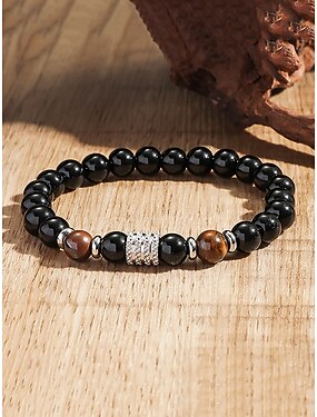 Herrenarmband aus Naturstein und Edelstahlperlen - Tigerauge und schwarzer Onyx - stilvolles und langlebiges Accessoire
