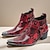 Rote Herrenstiefeletten aus Schlangenleder mit metallischer Zehenkappe – mutiges Fashion-Statement für Partys und Events