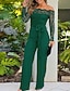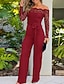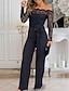 Damen Overall Elegant Einfarbig Langarm Weites Bein Schulterfrei Spitze Patchwork Täglich Urlaub Normale Passform Schwarz Wein Marineblau Frühling