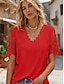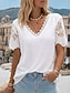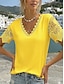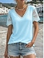 Damen T Shirt Spitzen-T-Shirt T-Shirt Spitze Einfach Mode Stilvoll Klassisch Kurzarm V Ausschnitt Normale Oberteile Täglich Ausgehen Wochenende Blau Weiß Gelb Rosa Rote Sommer Frühling