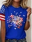 Unabhängigkeitstag Patriotisches Damen T-Shirt Grafik Flagge Vintage Stylisch Klassisch Kurzarm Rundhals Reguläre Oberteile Alltag Wochenende Druck Weiß Rot Staubiges Blau Hellblau