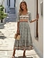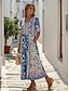 Damen Knielanges Kleid Boho-Kleid Strandkleid Sommerkleid Vintage Gotisch Täglich Strand Wochenende Normale Passform Blumen Kurzarm Rundhalsausschnitt Blau Sommer Frühling