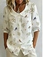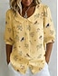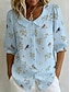 Damen T Shirt T-Shirt Druck Grafik Geometrisch Mode Klassisch Lässig Dreiviertelarm V Ausschnitt Normale Oberteile Täglich Ausgehen Wochenende Rosa Armeegrün Staubiges Blau Braun Grün Sommer Frühling