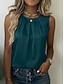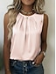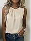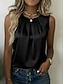 Damen Satin T Shirt T-Shirt Gerafft Einfach Elegant Mode Stilvoll Ärmellos Rundhalsausschnitt Normale Oberteile Lässig Täglich Ausgehen Blau Schwarz Weiß Aprikose Beige Sommer Frühling