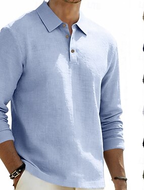 Herren Leinenhemd Poloshirts Lässig Straße Revers Langarm Basic Modern Einfach Knöpfe Frühling Herbst Normale Passform Schwarz Weiß Marineblau Khaki Dunkelgrau Armeegrün Leinenhemd