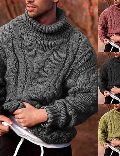 Herren Pullover Zopfmuster Stricken Normale Oberteile Gestrickt Schmale Passform Einfach Rollkragen Strickware Zeitgenössisch Lässig Alltagskleidung Bekleidung Herbst Winter Schwarz Rosa M L XL