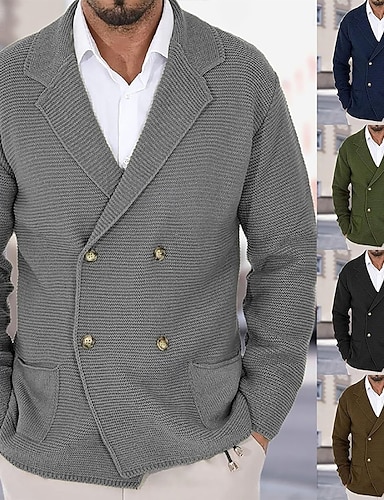 Herren Pullover Strickjacke Gerippt Stricken Normale Oberteile Gestrickt Einfach Umschlagkragen Moderne zeitgenössische Lässig Lässig Alltagskleidung Bekleidung Winter Grau M L XL
