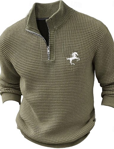 Herren Pferd Pullover Zip Pullover Reißverschluss Polo-Pullover Reißverschlusskragen Retro Vintage Brautkleider schlicht Party-Abendgarderobe Täglich Bestickt Gestrickt Warm Langarm Herbst Winter