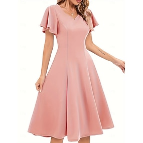 1950er Retro Vintage Rockabilly Kleid Kurze Ärmel Einfarbig A-Linie V Ausschnitt Kostüm Damen Lässig Party Alltagskleidung Erwachsene Kleid Frühling & Sommer