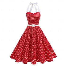 Rockabilly Midlänge A-Linien-Kleid Tupfen Tailliert und ausgestellt Kostüm Damen Karneval Valentinstag Lässig Heimkehr Retro-Mottoparty Erwachsene Kleid Sommer Frühling