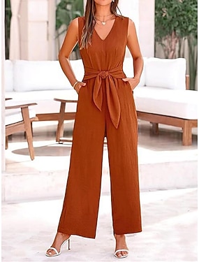 Damen Normal Jumpsuit Elegant Feste Farbe Ärmellos V Ausschnitt mit Schnürung Tasche B¨¹ro Geschäft Regular Fit Schwarz Wein Armeegrün Sommer
