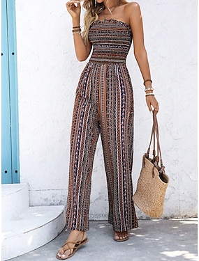 Damen Normal Overall Aktiv Grafik Ärmellos Weites Bein Trägerlos Rüsche Täglich Urlaub Normale Passform Schwarz Weiß Rote Sommer