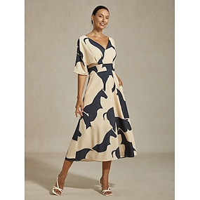Damen Weiblich Freizeitkleid Midikleid Wein Kurzarm Geometrisch Sommer Herbst Ganzjahresmode Hemdkragen Alltagstauglich XS S M