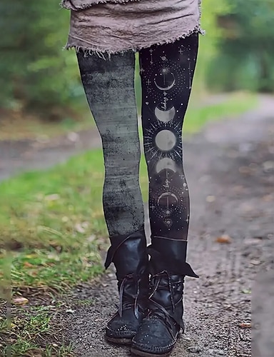 Damen Leggings Gemütliche Leggings Ethno-Stil Basic Lässig Volle Länge Hohe Taille MOON Drucken Thermowarm Bequem Dehnbar Lässig Täglich Ferien Schwarz Herbst Winter Schmale Passform