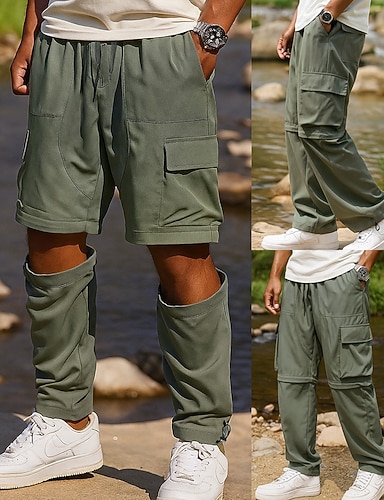 Herren Cargohosen Abzippbare Hosen Wanderhosen Softshellhosen Frühling Herbst Außen Normale Passform Schnelltrocknend Unterteile Tasche Elastischer Bund Schwarz Armeegrün Camping / Wandern Laufen S M