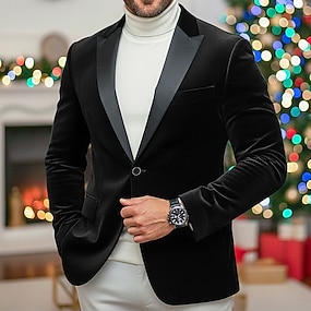 Herren Blazerjacke Samtblazer Formell Weihnachten Party Tasche Warm Vintage Winter Frühling & Herbst Samt Einfarbig Tasche Klassisch Einreihig Ein-Knopf Blazer Blau Schwarz Rote Grün