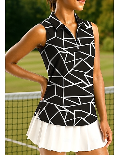 Damen Geometrisch Oberteile Sporthemd Golf-Poloshirt Tennis Shirt Ärmellos Reißverschluss UPF50+ UV-beständig Hohe Elastizität Feuchtigkeitsableitend Atmungsaktiv Tennis Pickleball Laufen