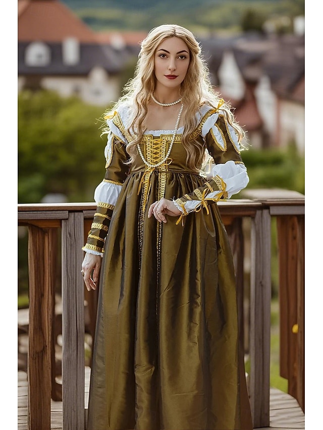Mittelalterlich Renaissance Kleid Abschlussballkleider Abendkleid Wikinger Keltischer Ritter Kostüm Damen königlich Halloween Karneval Maskerade Leistung LARP Renaissance-Messe Erwachsene Kleid #10183857