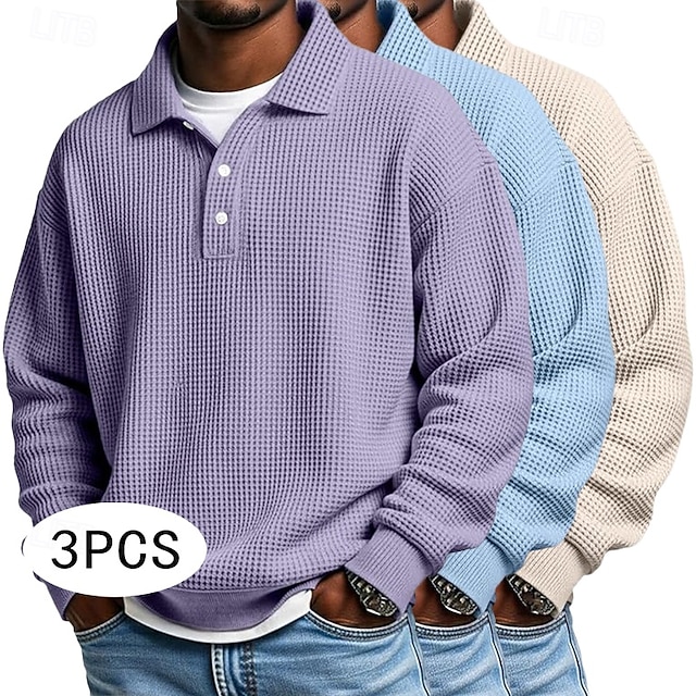 Herren Waffel-Poloshirts Textur Formell Geschäft Klassisch Langarm Mode Einfarbig Einfach 3 Teile Mehrfachpackung Herbst Frühling & Herbst Ganzjahres Lässiger Schnitt 1# 2# 3# 4# 5# 6# #10417724
