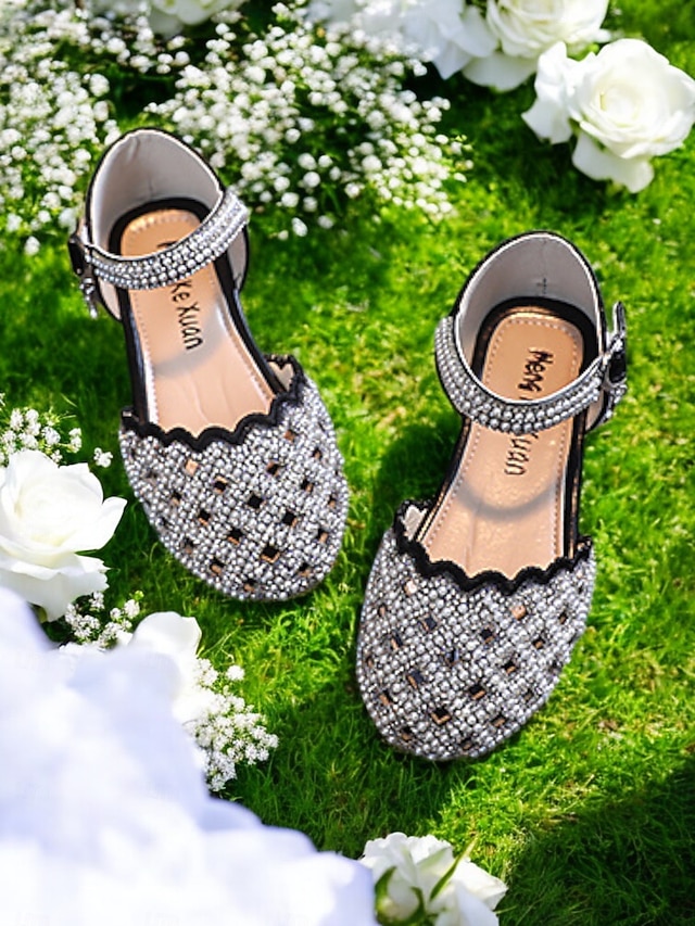 Glitzernde Mary-Jane-Schuhe für Mädchen mit Strasssteinen – elegante Schuhe mit gewelltem Rand für Hochzeiten und Partys#10727314
