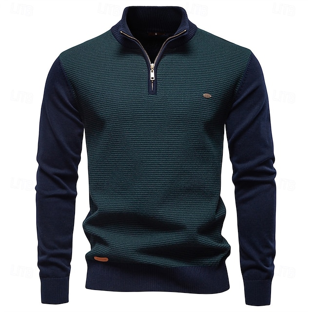 Herren Pullover Zopfmuster Stricken Normale Oberteile Halber Reißverschluss Farbblock Geometrisch Stehkragen Elegant Vintage Schule Urlaub Bekleidung Frühling Herbst Grün Armeegrün S M L #10855108