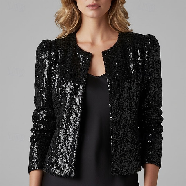 Damen Wintermantel Warm Bequem Pailletten Öffnung vorne Mode Lässig Einfach Urlaub Straße Alltagskleidung Ausgehen Kurz Rundhalsausschnitt Normale Passform Langarm Oberbekleidung Schwarz Rosa Herbst #11168929