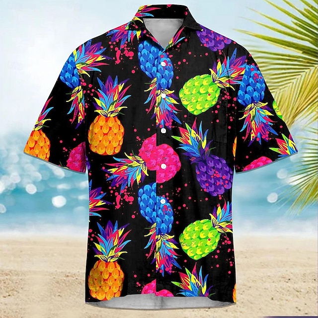 Herren Frucht Ananas Hawaiihemd Sommerhemd Aloha-Shirt Kurze Ärmel Hemd Umlegekragen Brautkleider schlicht Outdoor Urlaub Strasse Schwarz Weiß Rosa S M L #11215010