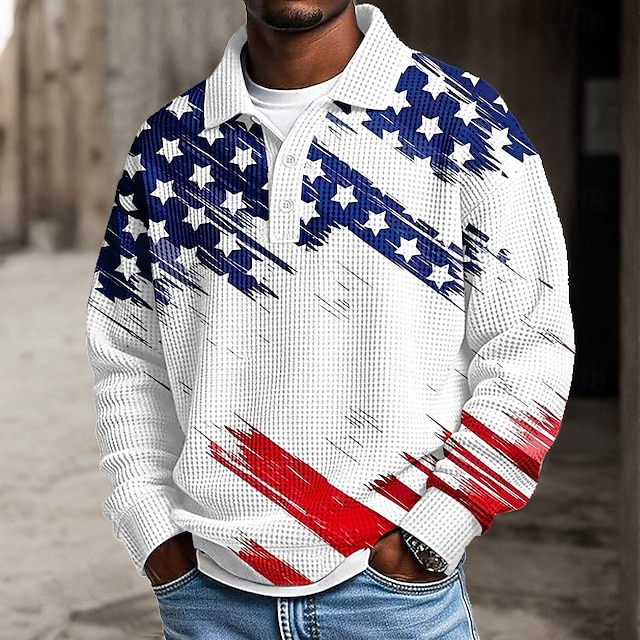 Stoff:100% Polyester,Geschlecht:Herren,Oberteil Typ:Textur,Polo,Design:3D-Druck,Anlass:Athleisure,Alltagskleidung,Stil:Lässig,Druckart:3D-Druck,Festival:4. Juli 2026 250.,Ausschnitt:Revers,Ärmellänge:Langarm,Elastizität:Mikroelastisch,Pflegetipps:Maschinenwäsche,Muster:Amerikanische US-Flagge,Saison:Winter,Herbst,Frühling,