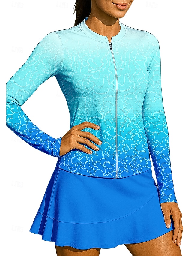 Damen Farbverlauf Sporthemd Tennis Shirt Tennistop Langarm Reißverschluss Blumen UPF50+ UV-beständig Hohe Elastizität Feuchtigkeitsableitend Atmungsaktiv Volleyball Tennis Golfspiel Stehkragen #12389299