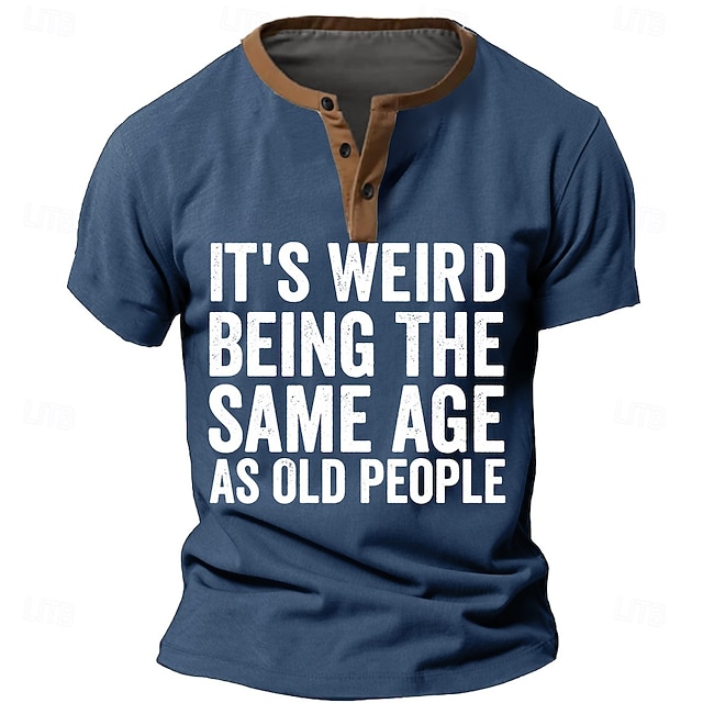 Männer Lustiges Henley Grafik T-Shirt "ES IST SELTSAM DAS GLEICHE ALTER WIE ALTE LEUTE ZU SEIN" Zitat Kurzarm Olivgrün #12964166