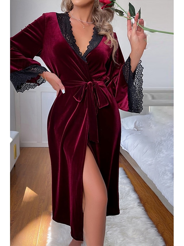 Damen Robe Lässig Komfort Einfarbig Schnürung Heim Täglich Langarm V Ausschnitt Blau Wein Grün Sommer Frühling Herbst Winter Normale Passform #13085086