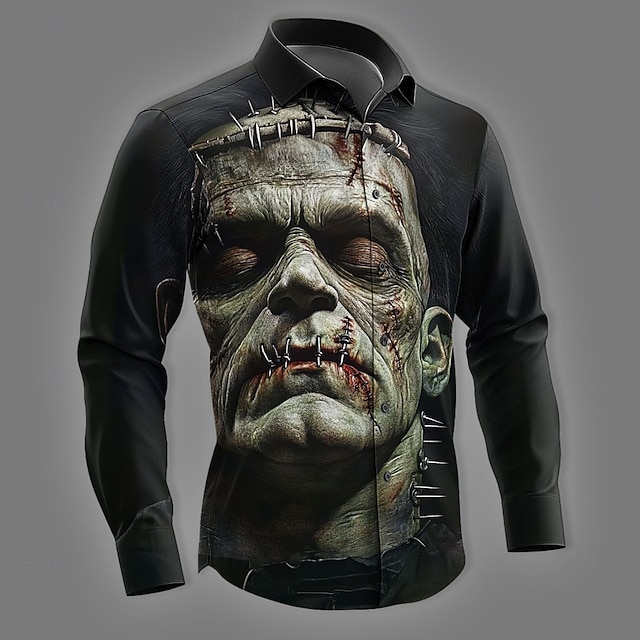 Herren Zombies Horror Hemd Knopfhemd Langarm Dunkler Gothic-Stil Ferien Streetwear Frühling Herbst Umlegekragen 3D-Druck Hemden mit Kragen Schwarz 1 Schwarz Schwarz 2 #13086797