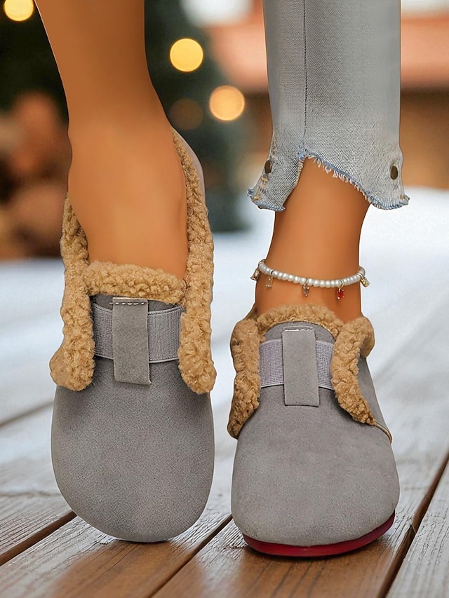 Weite Damen-Schlupfschuhe mit Fleecefutter, kuschelig warme Schuhe mit Gummiband, Winter-Hausschuhe für die Freizeit im Herbst und Winter #13132755