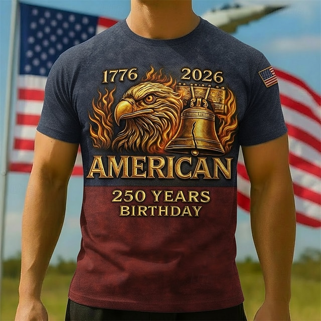Patriotisch T-Shirt Grafisches T-Stück Adler Amerikanische Flagge Freiheitsglocke Retro Vintage Patriotisch T-Shirt Ärmel 1776–2026 für Herren Erwachsene 3D-Druck für Unabhängigkeitstag / 4. Juli 4 #13440475