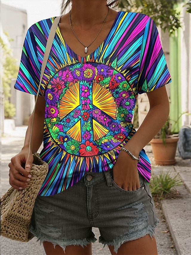 Damen T Shirt Druck Ombre Grafik Batik Vintage Stilvoll Lässig Kurzarm V Ausschnitt Normale Oberteile Täglich Blau Sommer Frühling #13802998